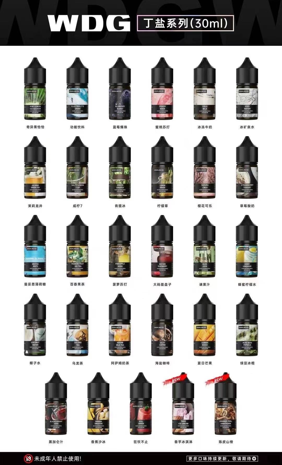 這款品牌具有多口味選擇,確保您長時間享受不同口味的煙霧體驗,而不必擔心煙油的質量或效果會受到影響。這些菸油不僅僅是一種煙霧製造工具,更是一種藝術品和風格的展示。它們采用了最優質的原材料和最先進的技術,確保每一次使用都能夠帶來頂級的煙霧效果和滿足的口感。這是一個極富創意與靈感的夏日必備品!美國品牌Wonder Delicated Giant(WDG) Biotechnology Limited(簡稱WDG通用煙油系列)的出現,為您的夏日時光增添了一絲驚喜和活力。夏日重擊小煙油系列是您享受戶外生活、派對和休閒時光的完美伴侶。